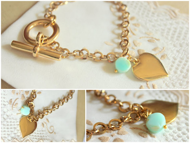 So I teamed up with this lovely online jewelry store called 'Petite Delights' that makes vintage style jewelry. They have been gracious enough to giveaway a Gold plated charm bracelet with real Opal gem stone charm and heart charm worth $43.00. Visit the store for more details.